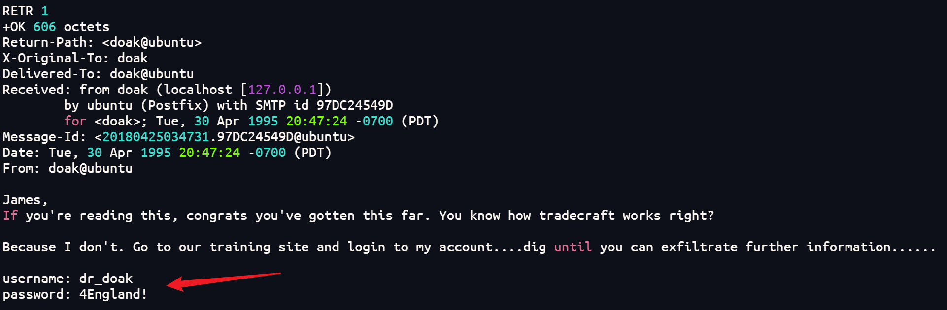 在doak的邮箱里发现一组用户名和密码dr_doak/4England!