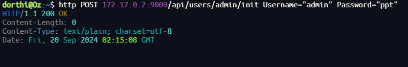 http POST 172.17.0.2:9000/api/users/admin/init Username="admin" Password="ppt"