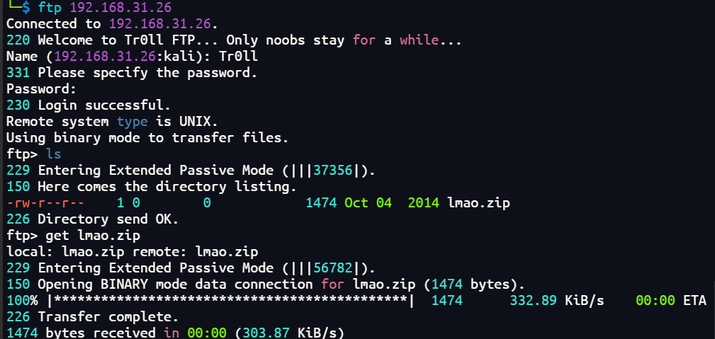 2、前期都是需要比较充分的信息收集,包括ftp登录、zip密码爆破,都离不开信息收集
